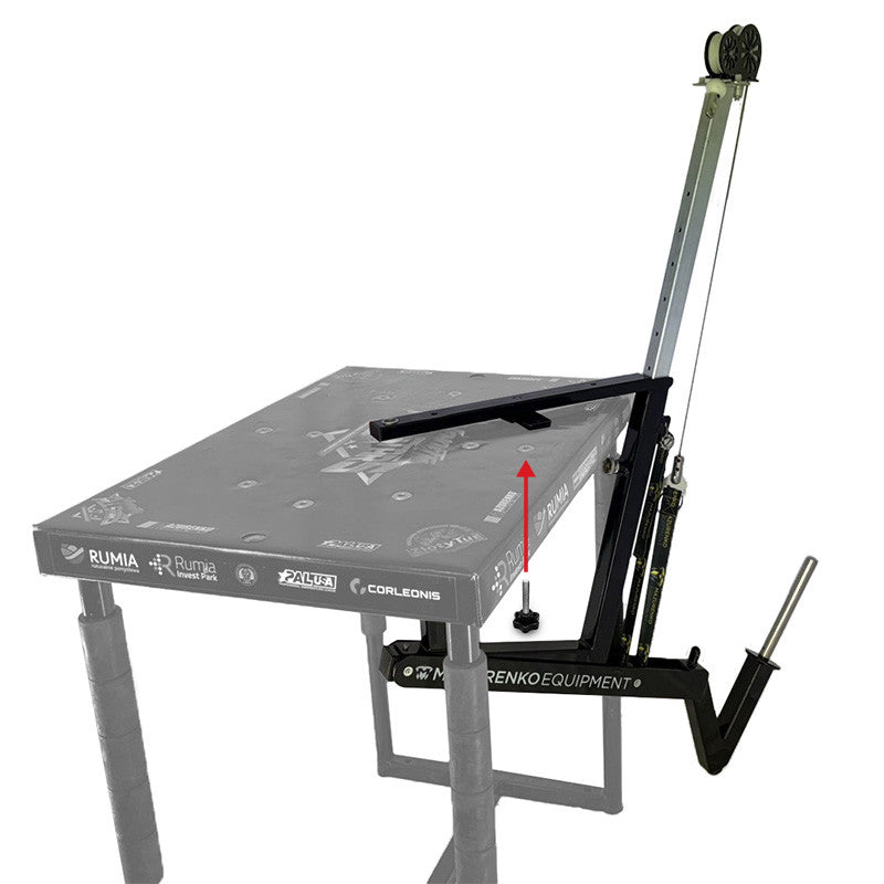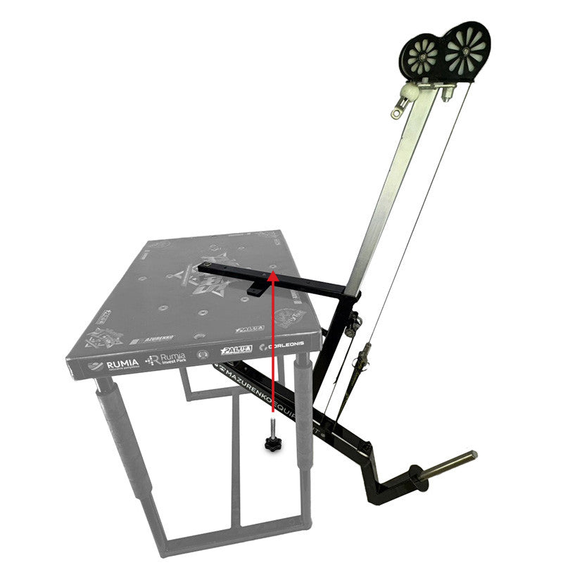 A special attachment designed for training both at home and in a gym. It integrates seamlessly with the Mazurenko Armwrestling Equipment table. Easy and quick to assemble and disassemble. Ideal for training most muscle groups essential for armwrestling.