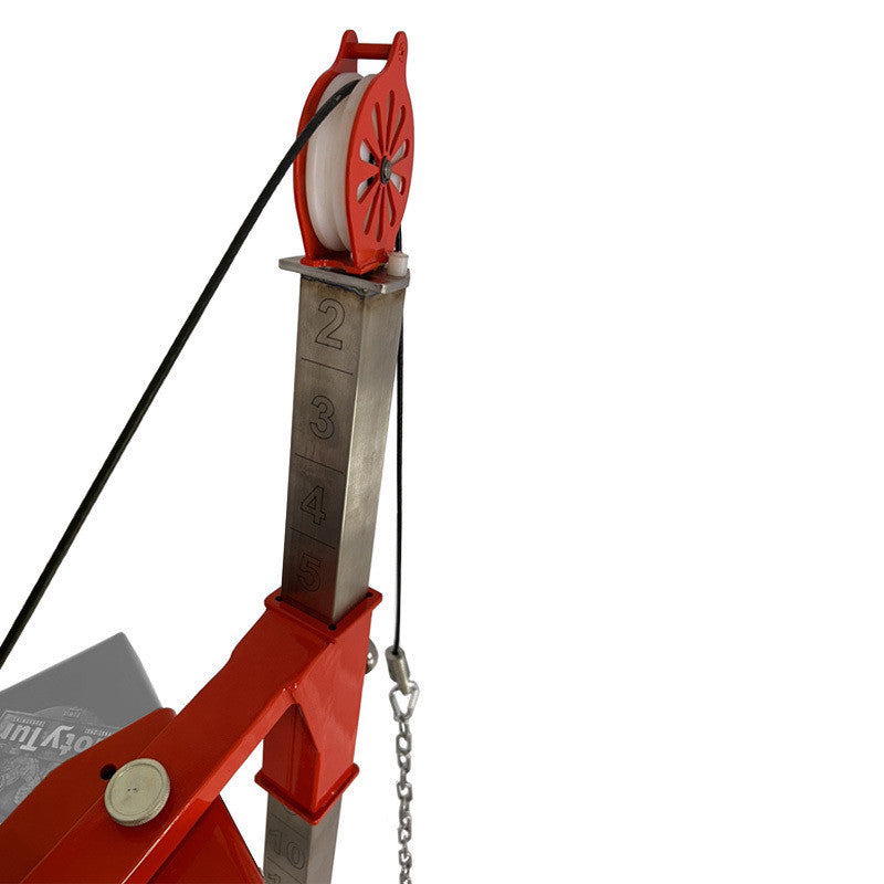 Load transmission: 1:1 using a swivel pulley, steel cable, and adjustable strap