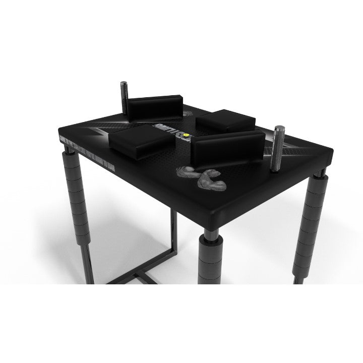 Precisely made, easy to transport with the possibility of further extension. The upholstery of the table has been made really carefully in order to eliminate chafes and bruises during long and tiring armwrestling fights.