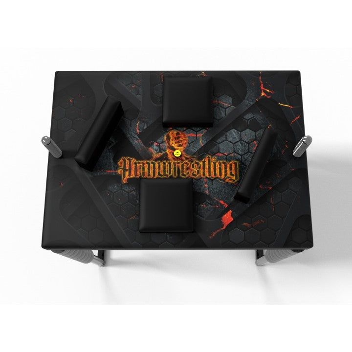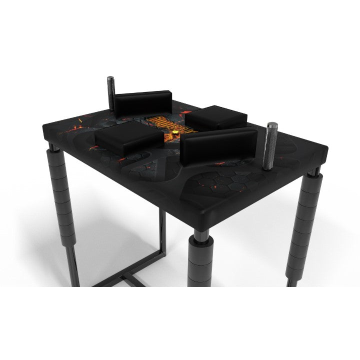 Precisely made, easy to transport with the possibility of further extension. The upholstery of the table has been made really carefully in order to eliminate chafes and bruises during long and tiring armwrestling fights.