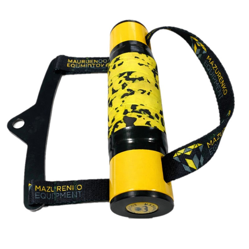 HANDLE ON TAPES WITH WRIST FIXATION – metal, yellow, on black tape