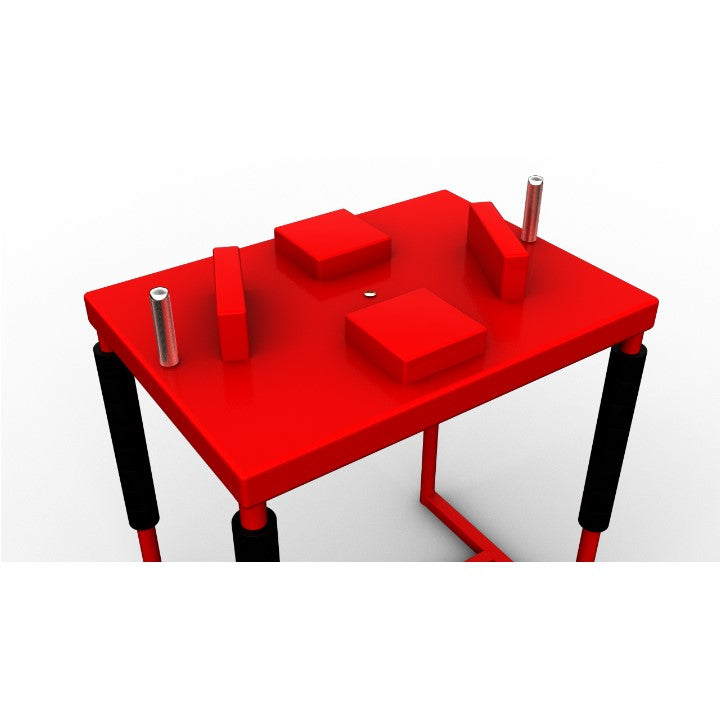 Precisely made, easy to transport with the possibility of further extension. The upholstery of the table has been made really carefully in order to eliminate chafes and bruises during long and tiring armwrestling fights.