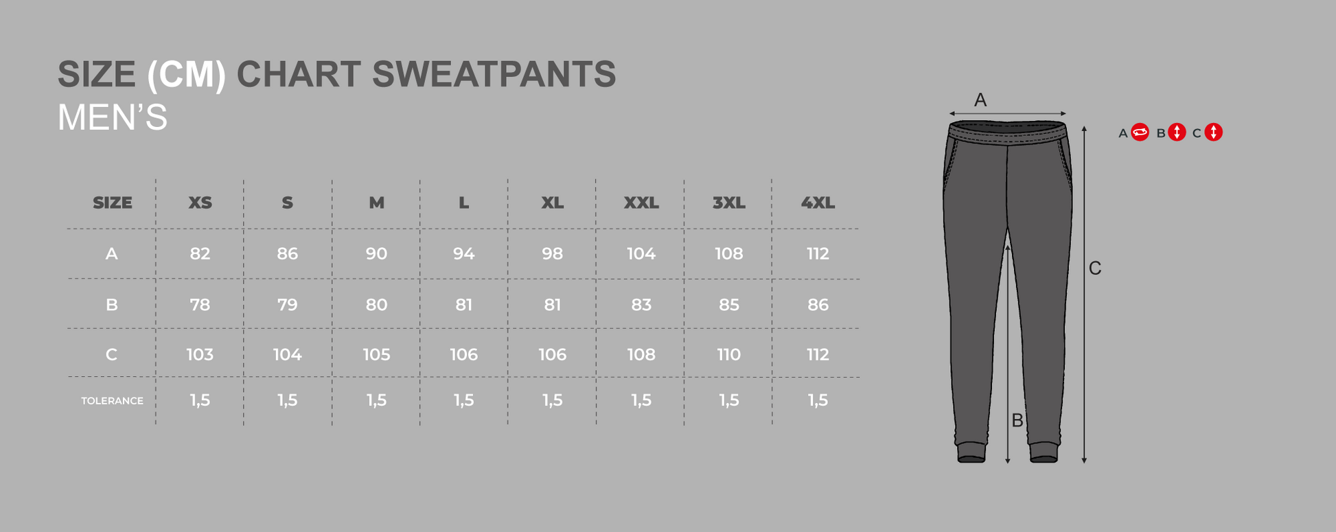 Sweatpants with pockets and drawcords, in complete size charts. Simple cut, tapered legs – for gym, training, jogging, fitness or daily use.